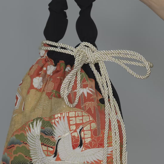 Torebka uszyta z jedwabnego, formalnego kimono tomesode z kieszonką wewnętrzną