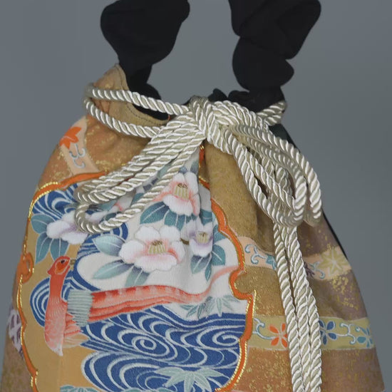 Torebka uszyta z jedwabnego, formalnego kimono tomesode z kieszonką wewnętrzną