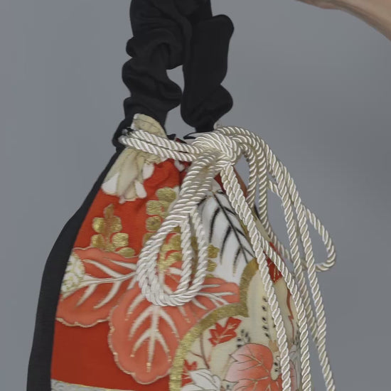 Torebka uszyta z jedwabnego, formalnego kimono tomesode z kieszonką wewnętrzną