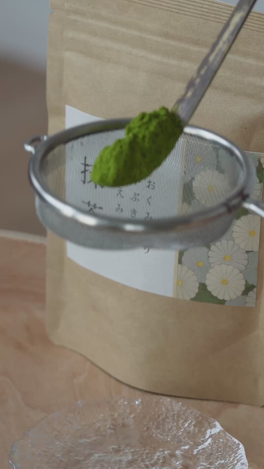 Sposób: przesiej matchę do miseczki, zalej niewielką ilością ciepłej wody i ubij trzepaczką (chasen) do uzyskania gładkiej, kremowej piany.