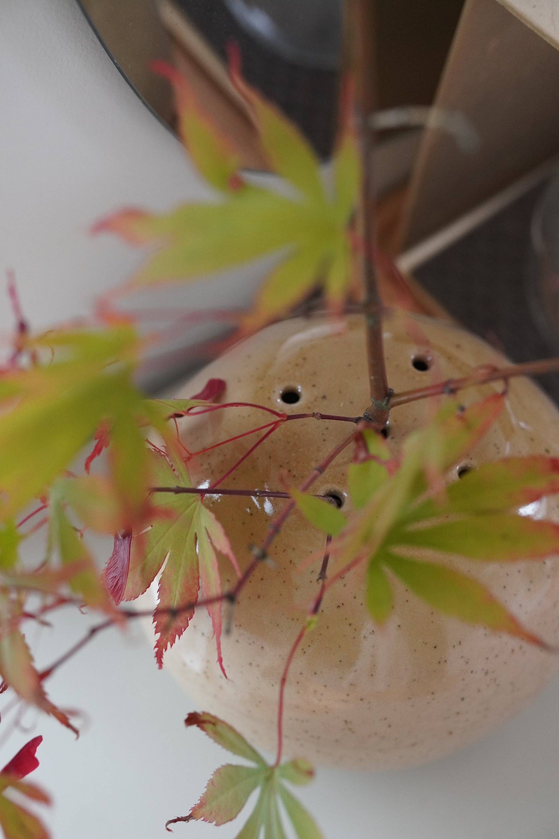 Wazon został zaprojektowany tak, by harmonijnie współgrać z subtelnością i równowagą kompozycji ikebany. Organiczna forma, wyczuwalna faktura gliny i starannie dobrane proporcje nadają mu charakter nie tylko użytkowy, ale i kontemplacyjny.